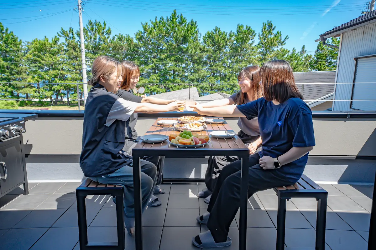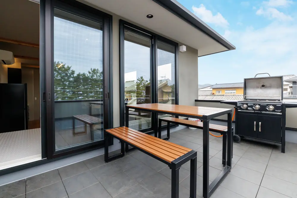 テラスではバーベキューを楽しむことができ、